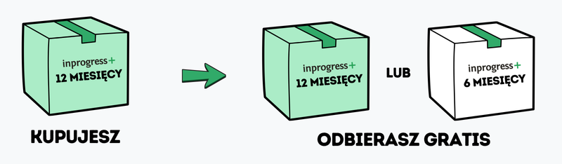- kupujesz Inprogress+ na 6 miesięcy → odbierasz gratis 1x 6 miesięcy,