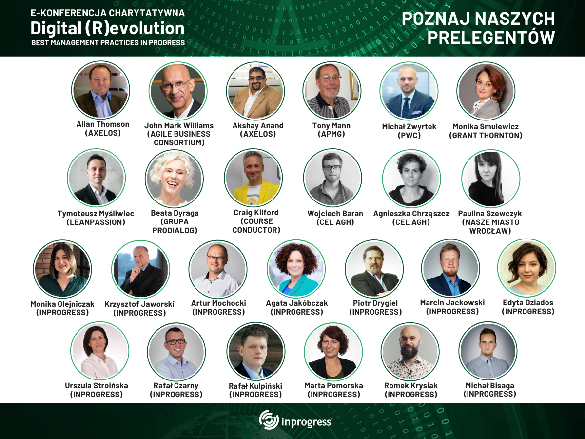 Już za tydzień spotkamy się online podczas konferencji Digital (R)evolution – Best Management Practices In Progress. Pojawi się na niej 26 prelegentów, w tym międzynarodowe gwiazdy zarządzania: John Mark Williams, Tony Mann, Allan Thomson, Akshay Anand oraz Craig Kilford. Poznajmy ich bliżej!